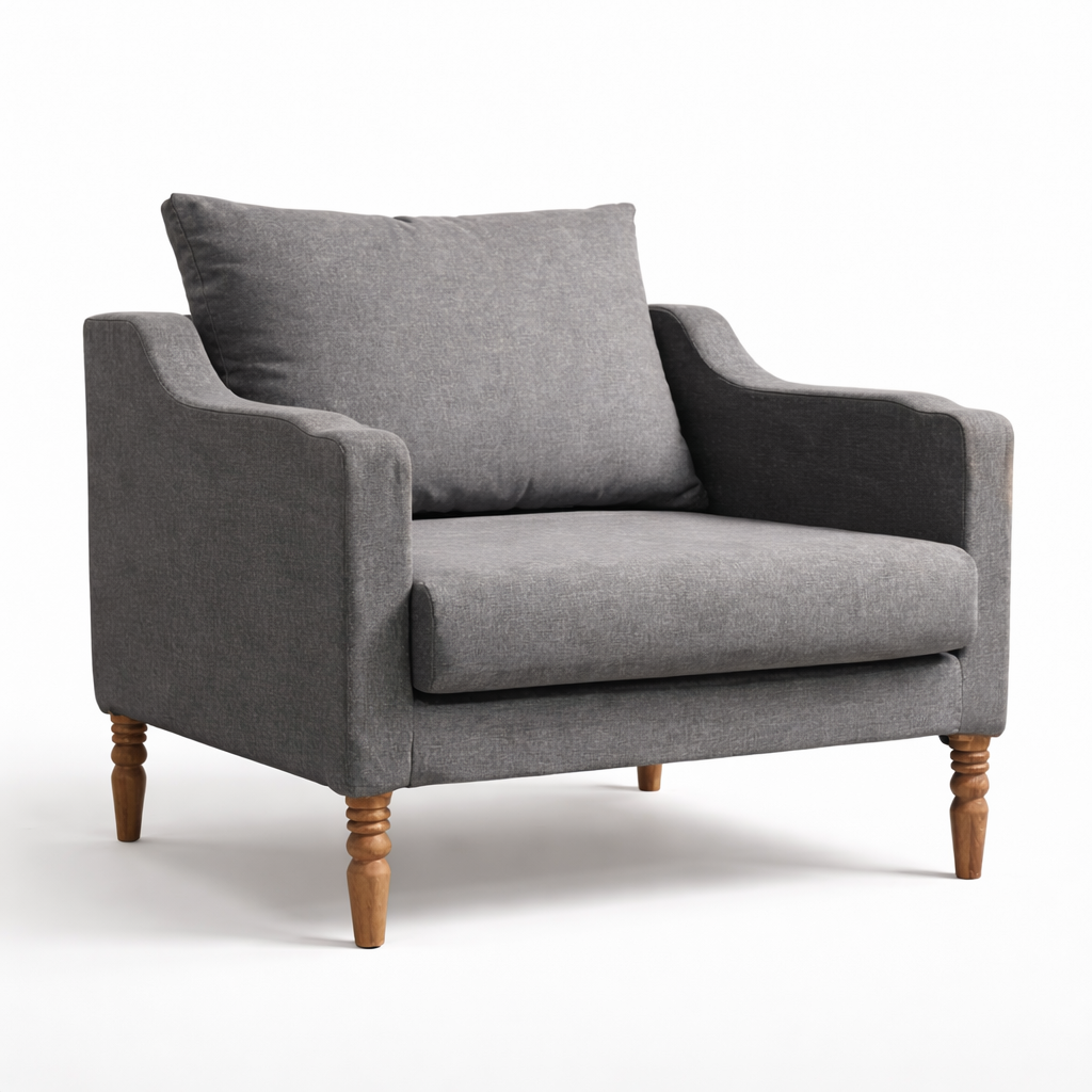 • Materials: Solid walnut, rubberwood, plywood, duck down, foam, fabric – 91% polyester, 9% acrylic, Martindale test – 50,000 rubs